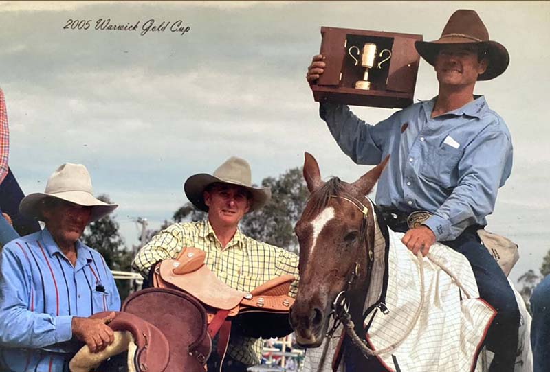 Today, the family cattle station in Nebo still remains his home base. They manage over 2000 cattle there, as well as breed and train horses – with up to fifty onsite at a time. They take dozens with them as they travel the countryside for sales and competition.